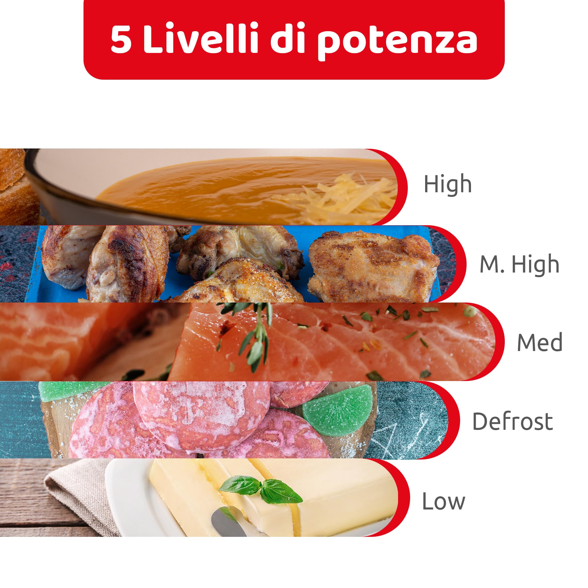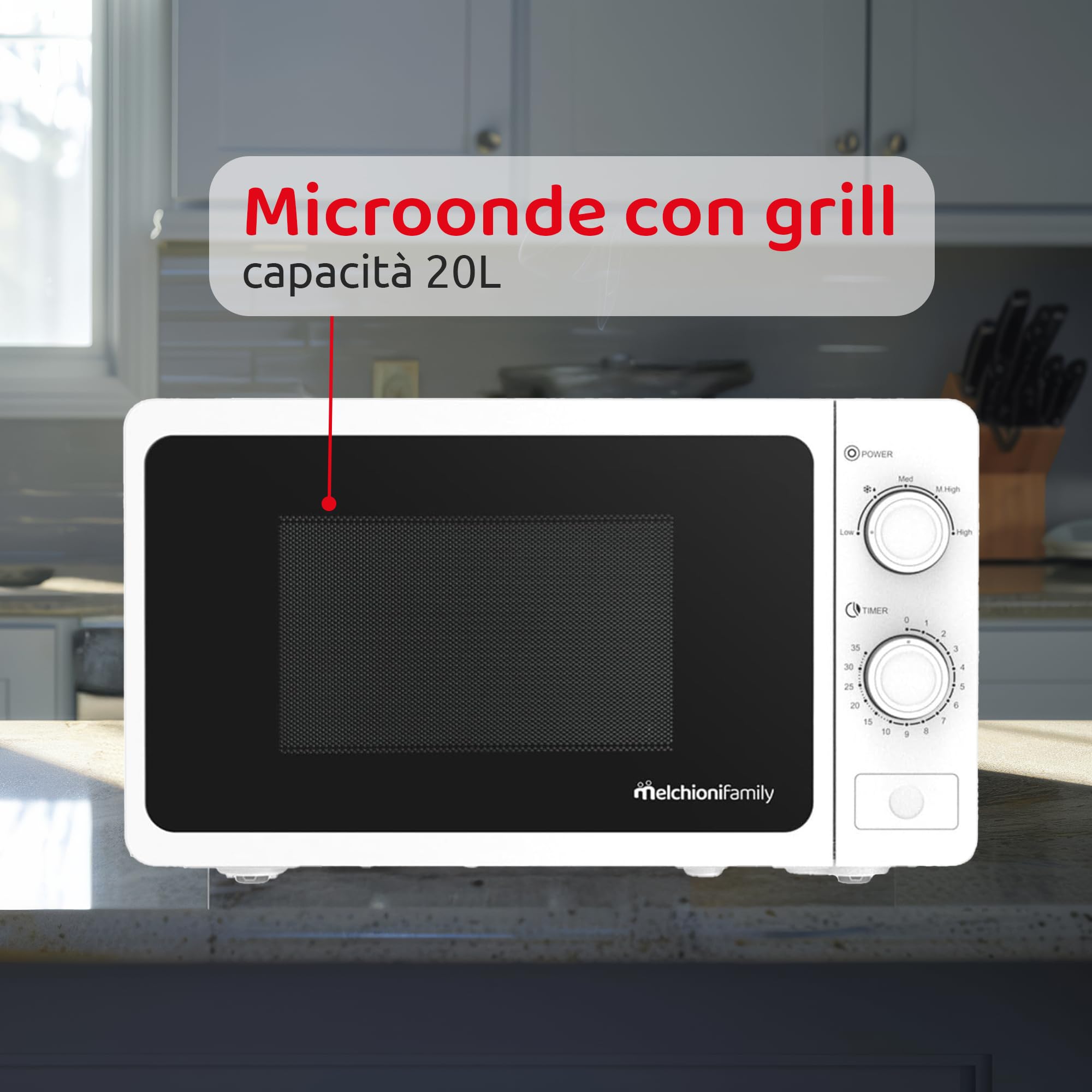 Melchioni ONDA е микровълнова фурна с капацитет 20 литра, подходяща за: