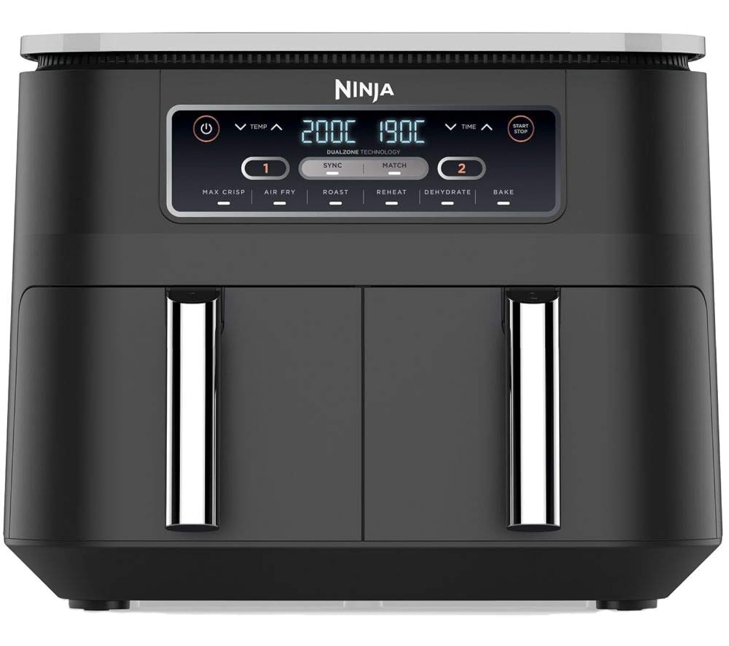 Ninja Foodi AF300UK е двузонов фритюрник с горещ въздух с две отделни кошници по 3.8 литра.