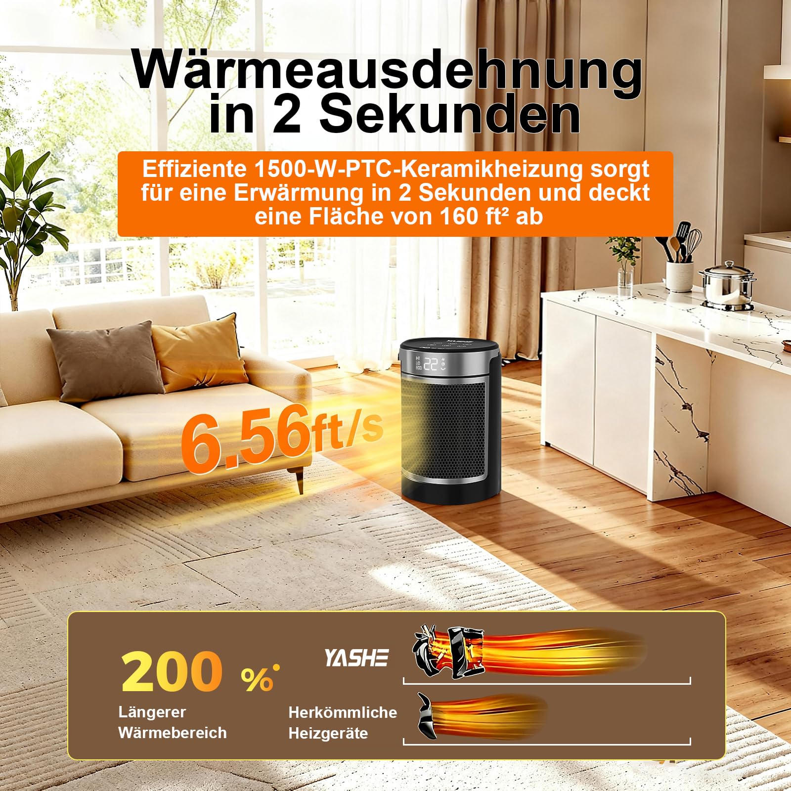 YASHE PTC-907B е модерна вентилаторна печка с керамичен нагревател, която загрява бързо и равномерно помещения до 20 m².
